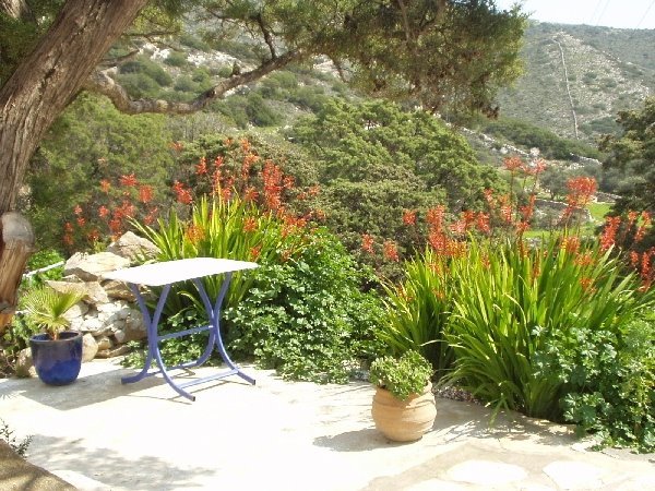 Paros in ancient times was covered by dense forests but unfortunately it all disappeared for now leaving spiky, bushy vegetation behind. The climate is excellent for a lush Mediterranean garden (although you have to water) and a lots of us is very committed to plant more trees and establish nice gardens on the island.