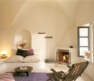 The cycladic architecture can be explained by several reasons: the small number of secure and easy to build on places, protection from the hard weather conditions (heavy wind in winter and solar heat in summer), a shelter from the many pirates of the area, and also scarcity of construction material.